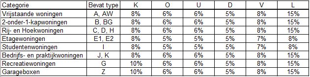 Bij een correctie, die afwijkt van indicatie 3, wordt per punt verschil onderstaand percentage verrekend. In onderstaand voorbeeld is gerekend met percentages die voor de gemeente Loon op Zand gelden):